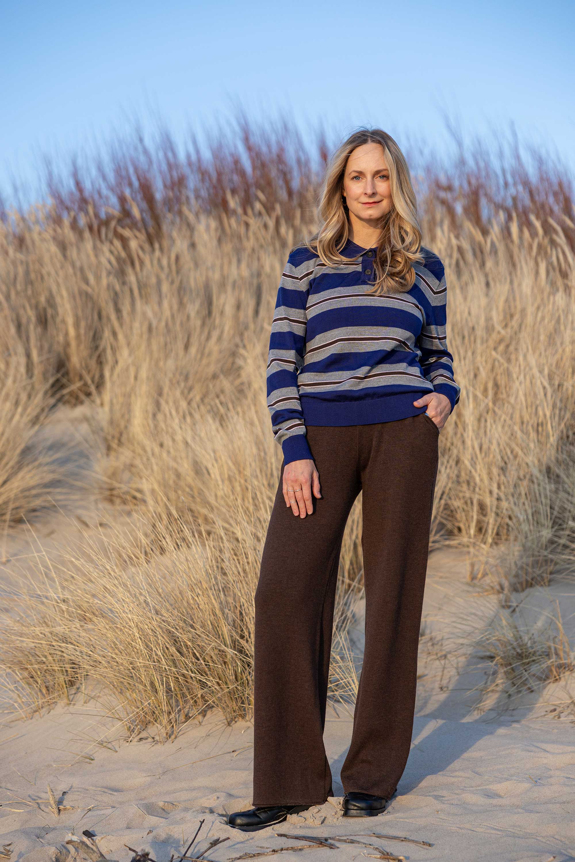 SALANIDA knitted pants come in two sizes and two length variations. All bottom styles have an adjustable waistband ensuring the best sit on the waist. Yes, just like in children's clothes! Our clients agreed the fit was just perfect to adapt even during pregnancy. Custom length is available upon request – please contact us at info@salanida.com.