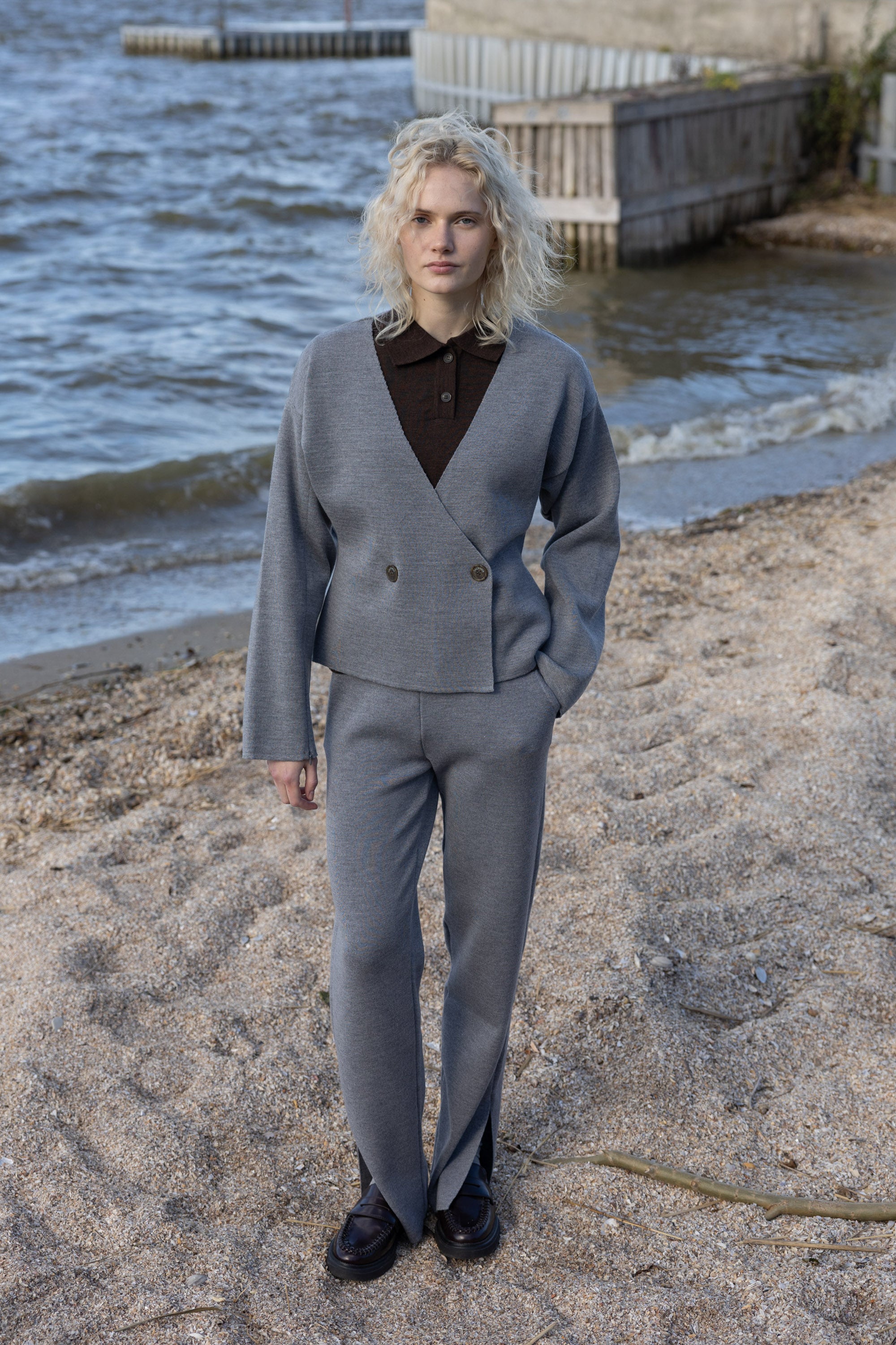 Galante blazer brings modern ease to timeless tailoring. It’s designed with a softly structured silhouette that subtly accentuates the waist with a double-breasted front. Discreet zip details at the sleeves add a contemporary touch, allowing subtle styling. Knitted from 100% RWS-certified extra fine merino wool, it's warm and soft.