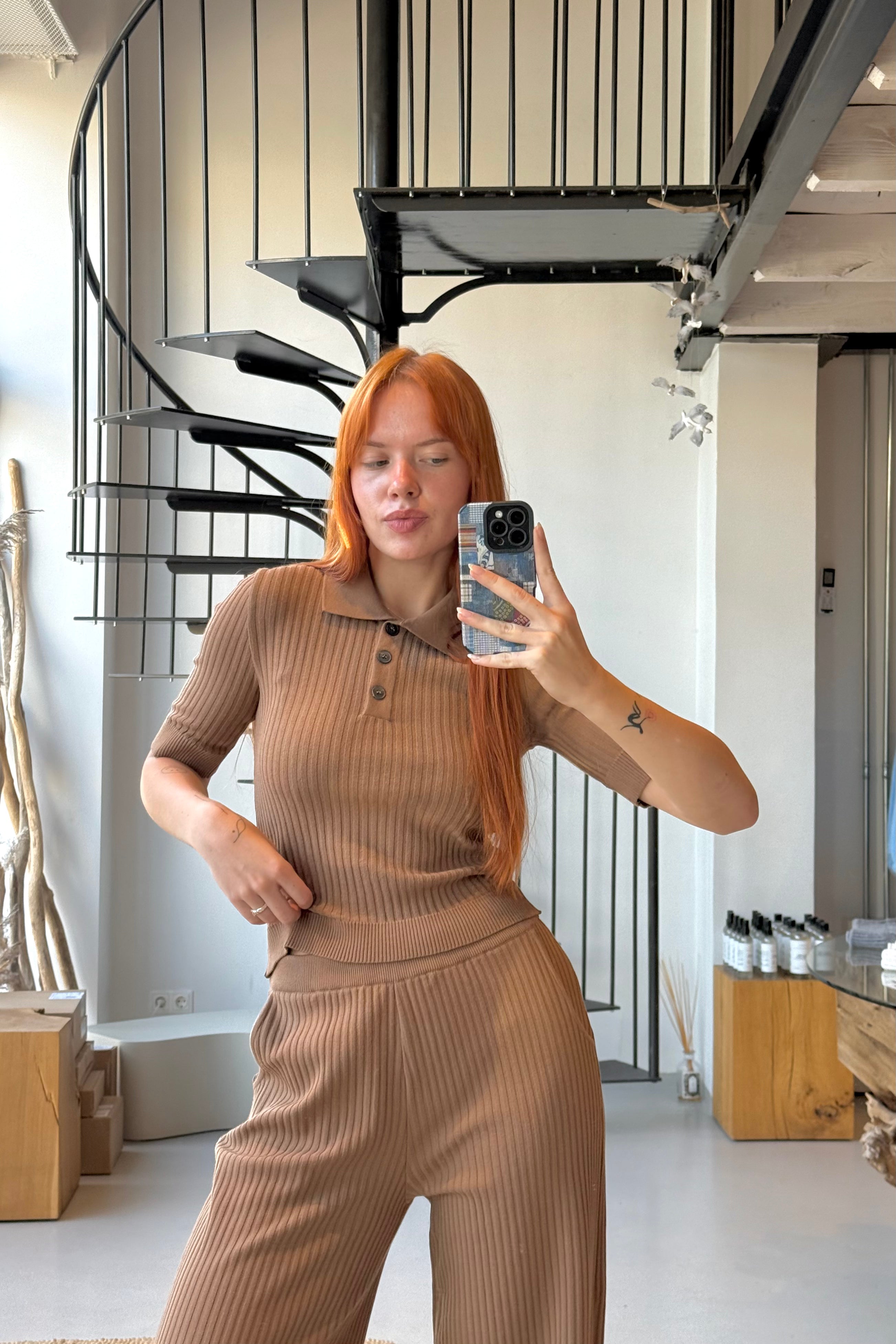 Klusa elegance satiekas ar ikdienas vieglumu. Madonna polo tops ir veidots ar izsmalcinātu rievotu struktūru, īsām piedurknēm un gludu polo apkakli ar pogām.