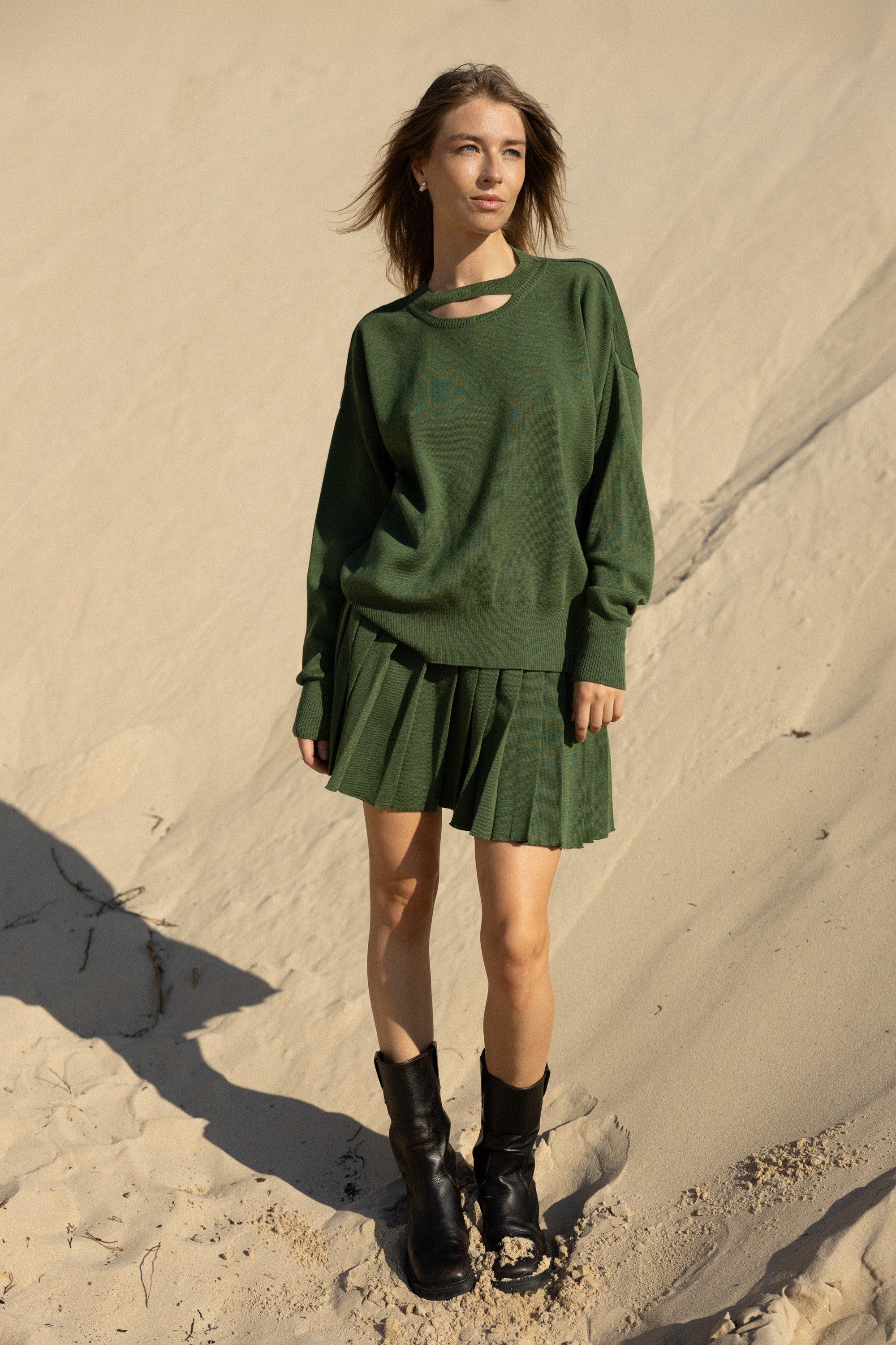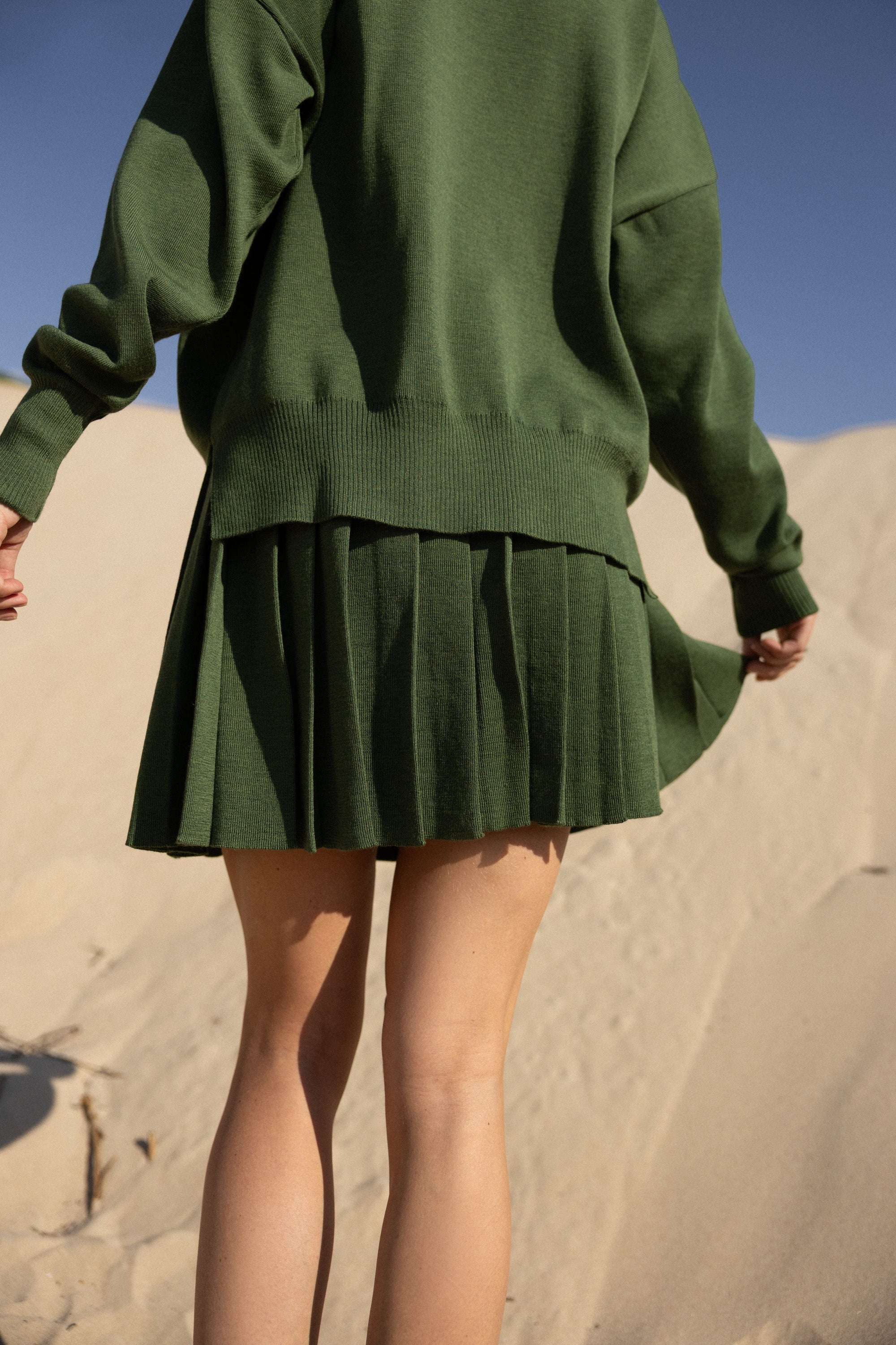 Piccolo skirt and Rotondo jumper styled together make a perfect everyday uniform. These pieces are knitted in 100% RWS-certified extra fine merino wool that makes them warm and extra comfy.