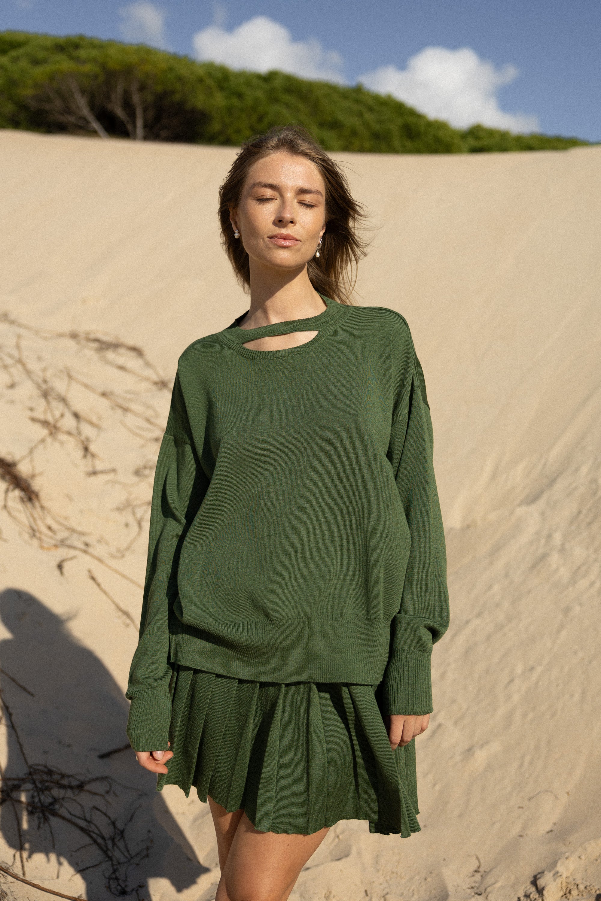 Piccolo & Rotondo 100% Merino Co-ord in Olive Green